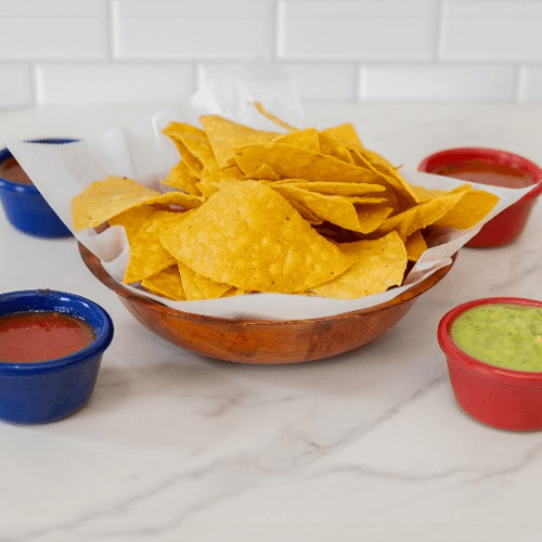 Whole fries corn tortillas cut in half and covered with beans, grilled chicken or grilled steak and melted Muenster cheese. Served with guacamole, sour cream and pico de Gallo