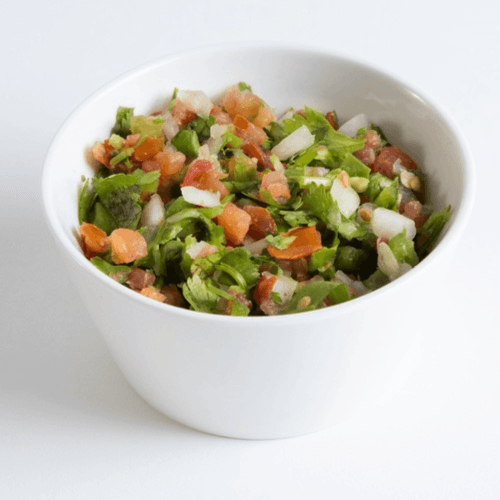 Bell peppers, onion, tomatoes, mushrooms and mixed vegetables, with lettuce and sour cream. Served with rice and beans, with choice of tortillas