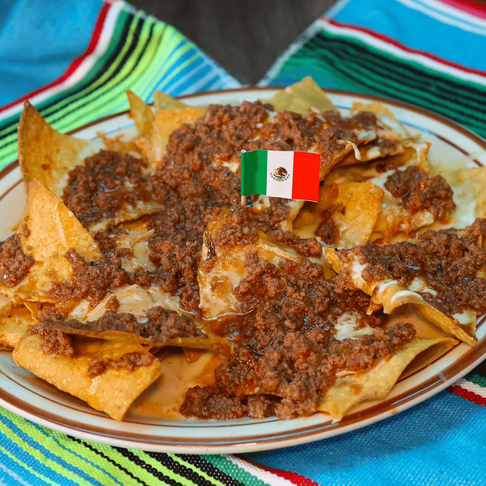 Ground beef, shredded cheese and queso only
