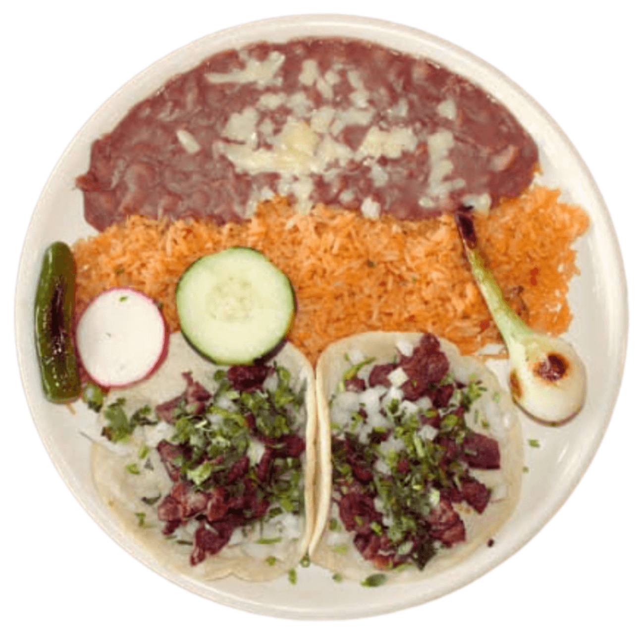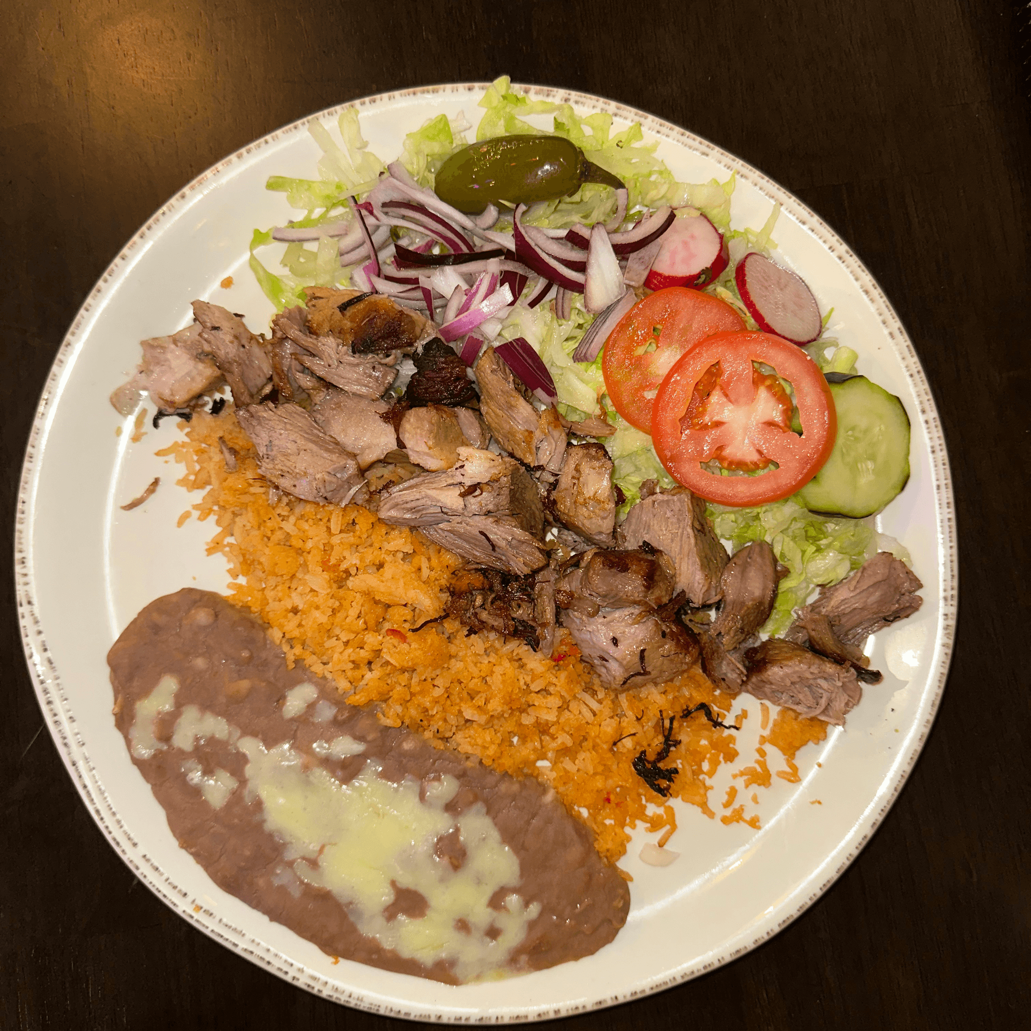 Served with rice & beans, lettuce, red onion, pico de gallo, your choice of flour or corn tortillas.