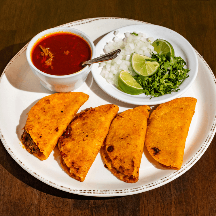 Mexican sausage, cheese melted in a traditional Mexican fashion, served with flour tortillas, so you can roll your own delicious tacos