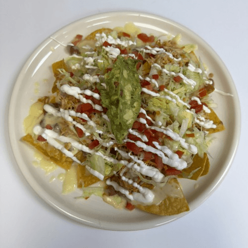 Prepared with beans, lettuce, tomato, jalapeños, guacamole, cheese and sour cream