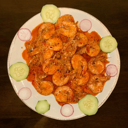 Cook with red spicy sauce, served with cucumbers and radishes. No menu substitution unless otherwise noted. Restaurant nor responsible for any mistakes made on special orders, unless order was approved by the manager