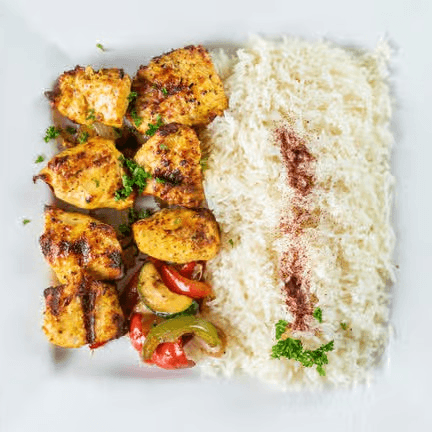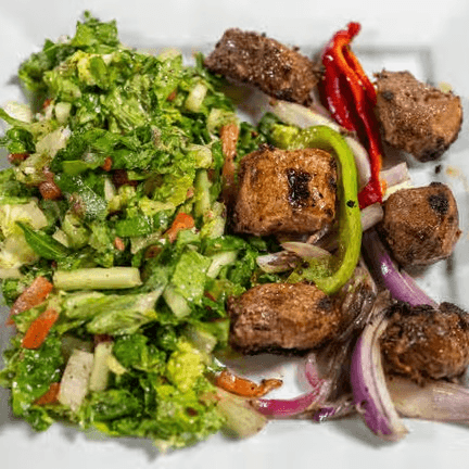 4 persons. 6 skewers of beef, chicken, kofta, grilled veggies