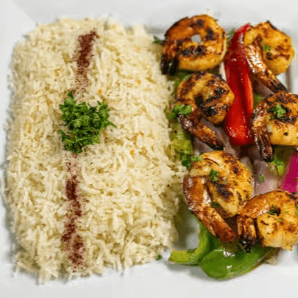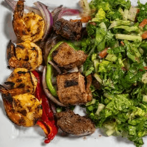 6 persons. 9 skewers of beef, chicken, kofta, lamb, grilled veggies