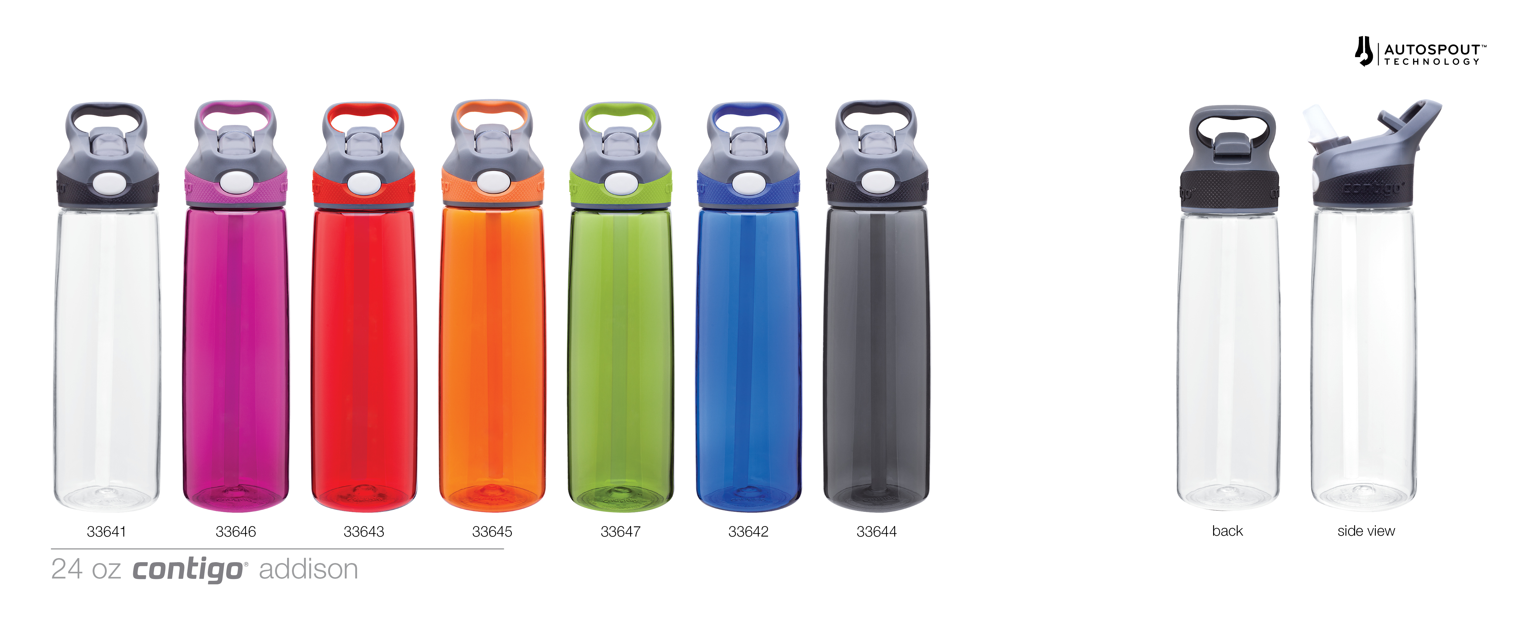Make a lasting impression in a way that keeps your brand front and center. The 24 oz Contigo AutoSeal Hydration copolyester bottle with carrying loop and push button opening is a name worth remembering. Why? Because it'll be the way your business commands your customer's focus and attention above the advertising noise.