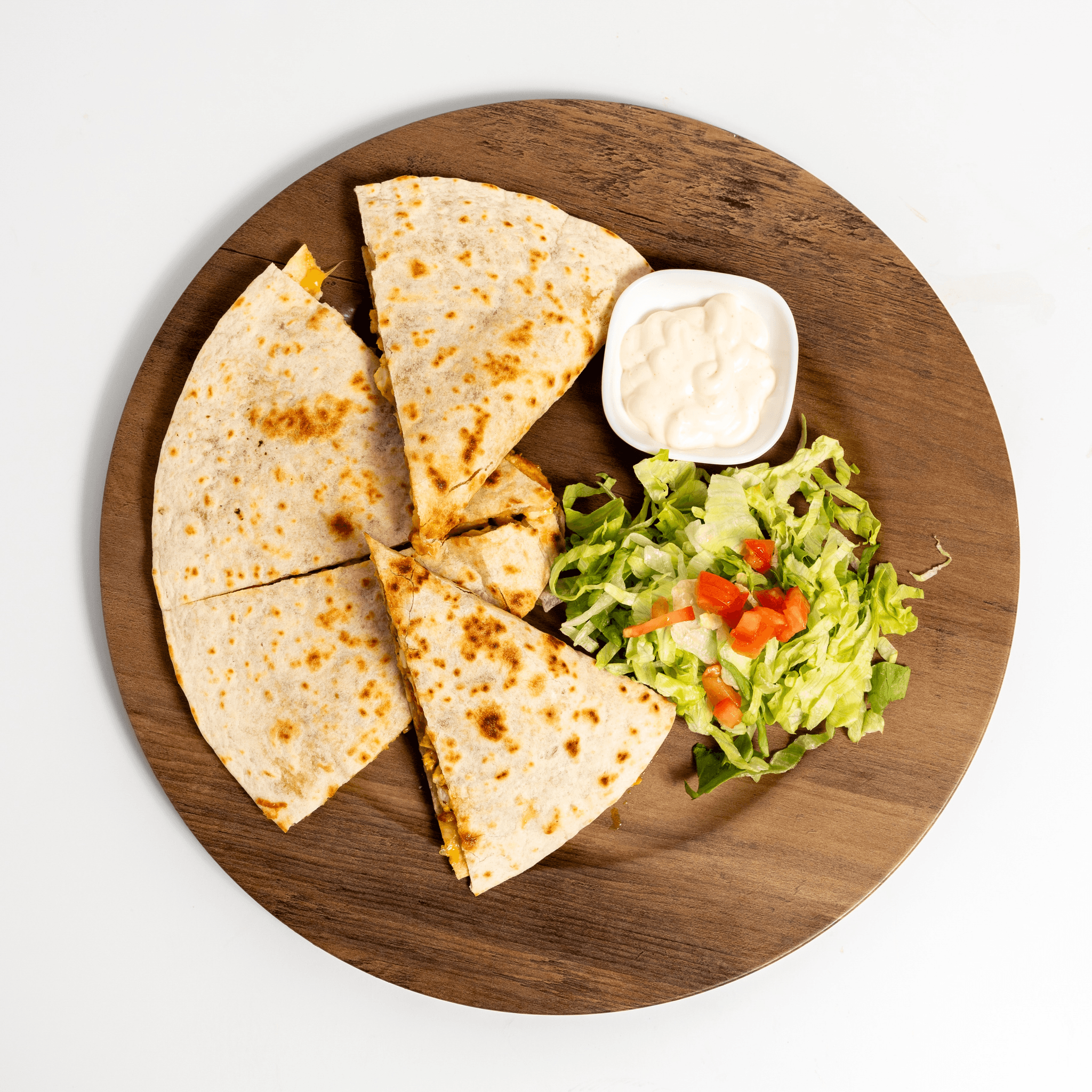 Grilled chicken melted cheese folded in a toasted tortilla served with a side of lettuce and tomato and our white sauce