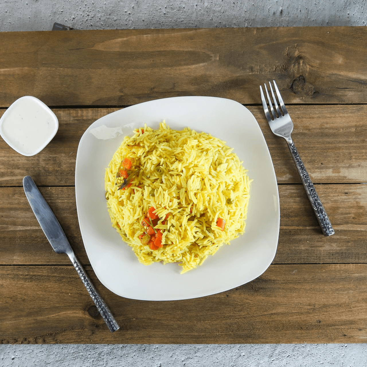Seasoned grilled chicken chopped into tender pieces, served over over a bed of fluffy white rice with fresh lettuce and tomato, drizzled with our signature white sauce