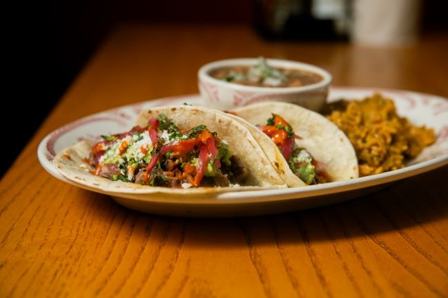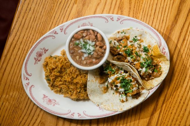 Choice of meat. Smoked red salsa, coleslaw and cilantro. Served with rice and beans.