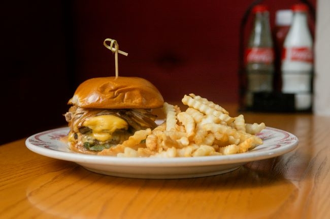 Tender smoked chopped brisket tossed w/ Midwood sauce on Texas Toast w/ smoked red onions & your choice of cheddar, Swiss, pimento, or blue cheese