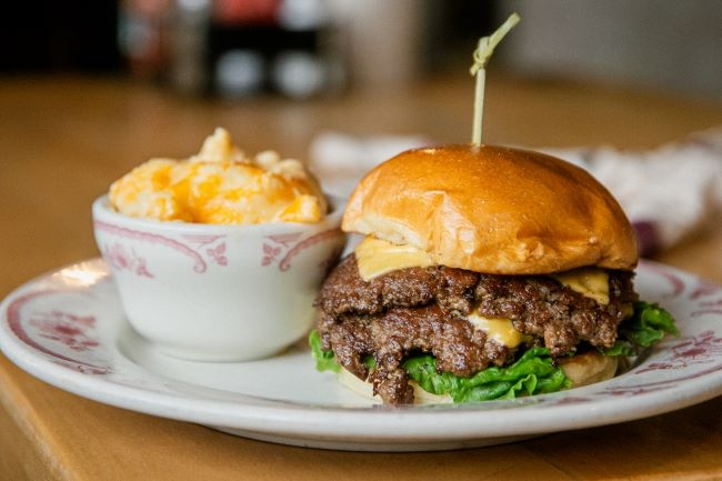 Two Irodori American Wagyu™ smashed patties, American cheese, house pickles, caramelized onions, barbecue burger sauce