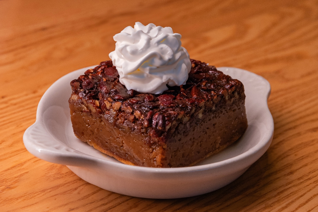 Just like classic pecan pie except thicker and better, w/ a dollop of whipped cream